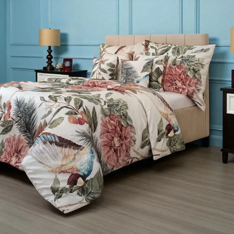 Saténové povlečení Kolibřík spojuje svěžest přírody s elegancí, čímž vytváří harmonickou a útulnou atmosféru ložnice.
