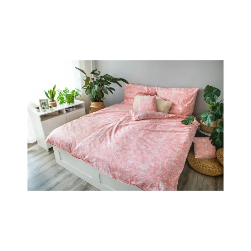 Krásná kombinace jemných pastelových barev je jedním ze způsobů, jak jednoduše oživit ložnici. Povlečení s motivem bílých kytek na růžovém pozadí je dokonalou kombinací elegance a jemnosti. Romantický design plný drobných bílých květů, které vynikají na jemném růžovém podkladu, vnese do vaší ložnice svěží atmosféru a klid. Růžová barva dodává povlečení nádech něžnosti a vytváří příjemný, útulný dojem.