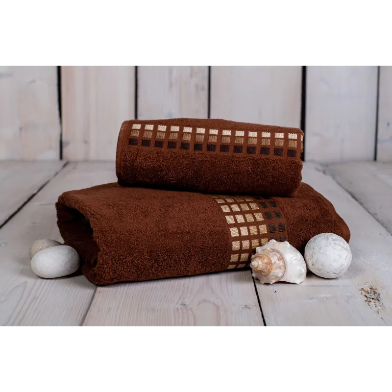 Hebký, nadýchaný a vysoce funkční froté osuška a ručník se zajímavým dekorem kostiček, který je savý a přitom rychle schne, se postará o vaše maximální pohodlí ve vaší koupelně.