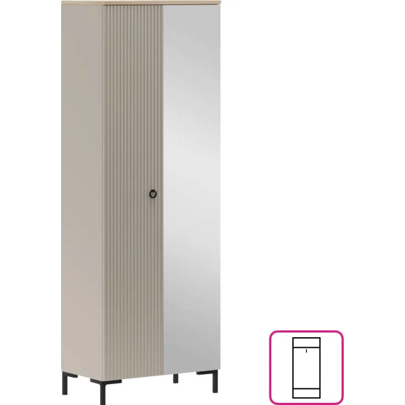Praktické vnitřní uspořádání nabízí police i výsuvnou věšákovou tyč, takže budete mít oblečení vždy přehledně uspořádané. Kvalitní materiály, jako laminovaná DTD a frézovaná MDF, zajišťují dlouhou životnost a odolnost.