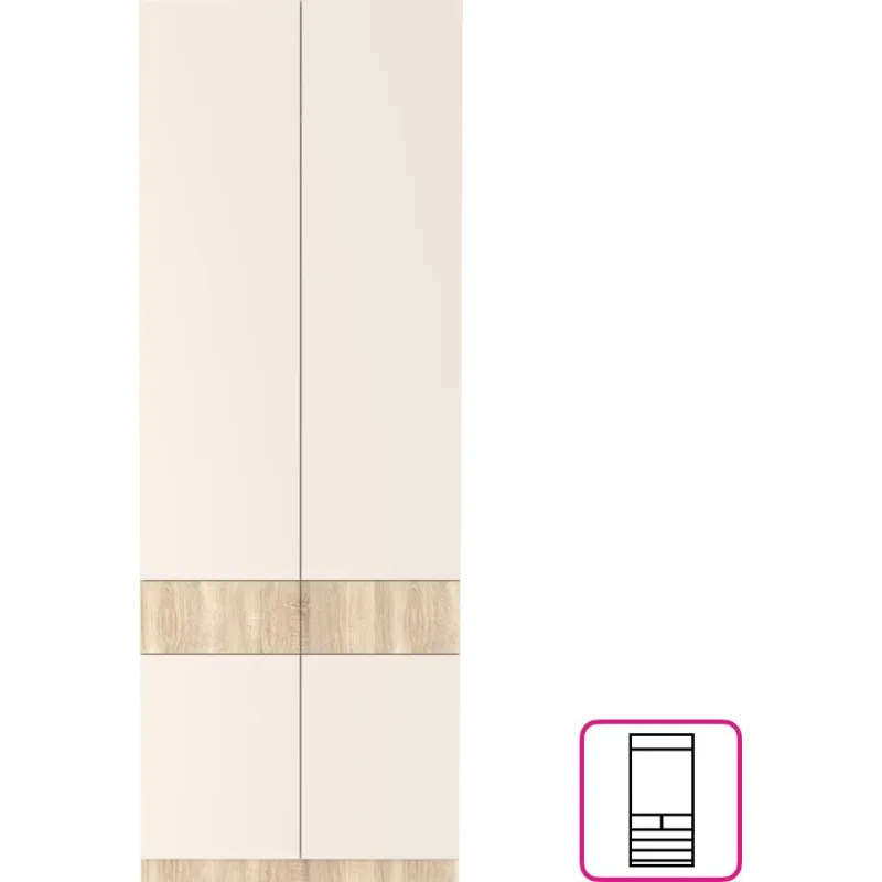 Skříň VERTIO SZF4D2S je ideální volbou pro každého, kdo hledá stylový a praktický nábytek do předsíně. Kombinace dekoru dub sonoma / kašmír působí moderně, elegantně a snadno se sladí s ostatním vybavením interiéru. Díky čistým liniím a provedení bez úchytek skříň skvěle zapadne do současných domácností.