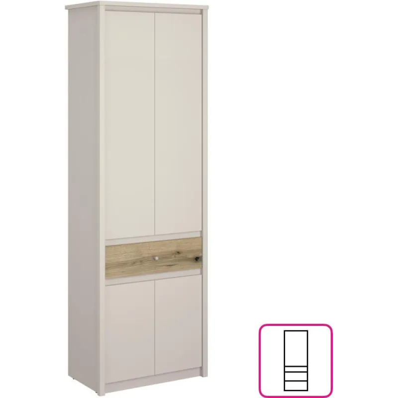 Skříň KAROS 4D1S/70 představuje ideální řešení pro menší prostory, kde potřebujete maximálně využít každý centimetr. Díky své užší konstrukci se skvěle hodí do ložnice, studentského pokoje nebo předsíně, aniž by zabírala příliš místa.